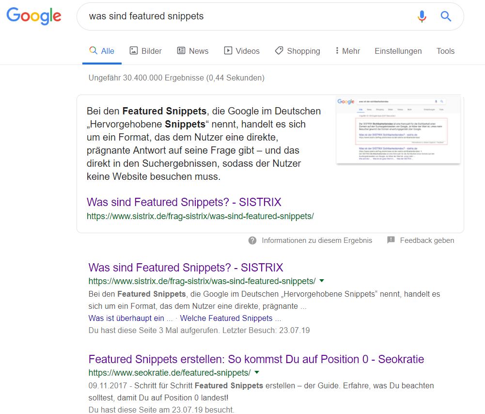 1. Finden Sie ein bereits bestehendes Featured Snippet und erobern Sie dieses