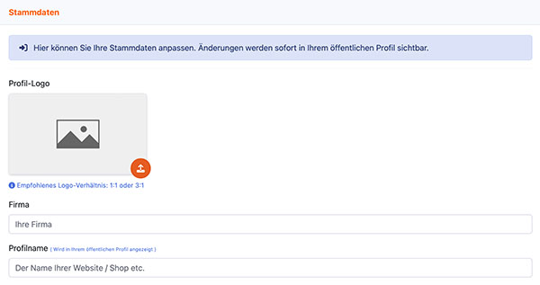 Um Ihr Profil zu Optimieren gehen Sie zu Ihren Stammdaten. Hier können Sie beispielsweise Ihr Firmenlogo hochladen und die wichtigsten Informationen ändern.