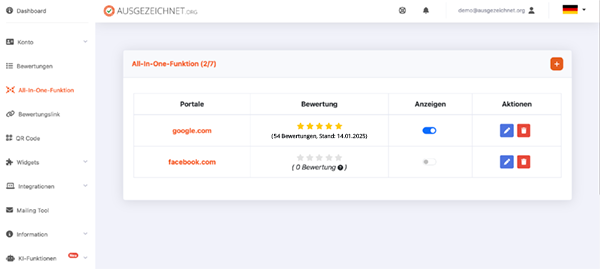 Was ist die All-in-One Funktion von AUSGEZEICHNET.org?