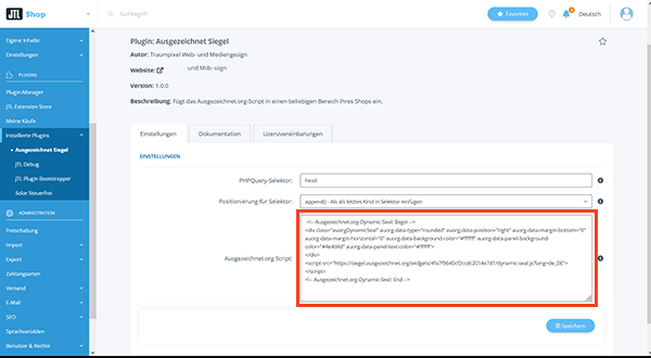 Plugins für die Darstellung des AUSGEZEICHNET.org Siegels und Verwendung weiterer Tools im JTL Shop