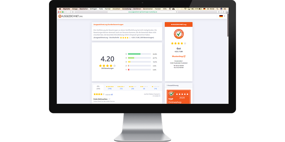 Ob Facebook, eBay, Amazon oder Google: Mit unserer All-in-One Funktion können Unternehmen mit wenigen Klicks Bewertungen auf fast allen großen Bewertungsportalen dem Siegel von AUSGEZEICHNET.org hinzufügen.