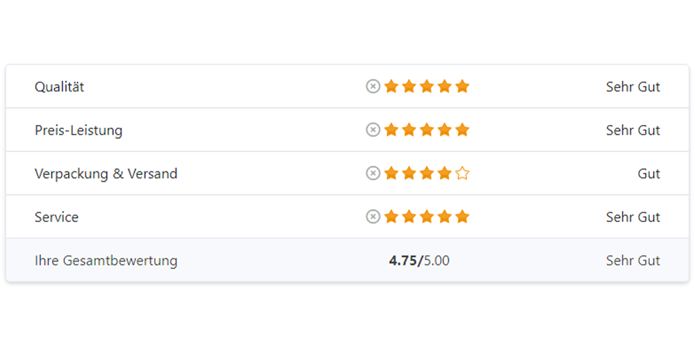 Lassen Sie sich von Ihren Kunden in branchenspezifischen Kategorien bewerten und generieren so ein realistisches Gesamtbild Ihres Services.