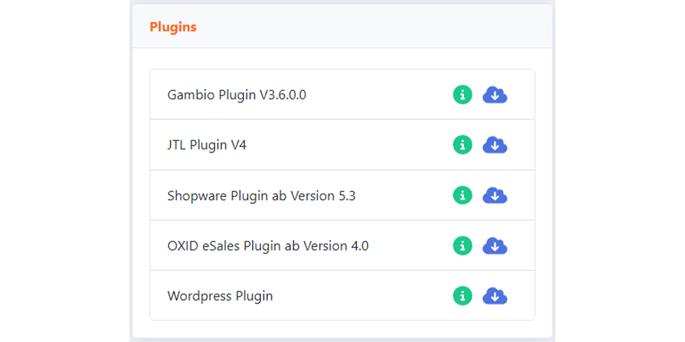 Im Kundenkonto haben Sie die Möglichkeit, eine Anleitung für die Implementierung Ihres gewünschten Plugins herunterzuladen.